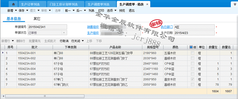 4、 生產(chǎn)調(diào)度,系統(tǒng)下單,下單尺寸自動分解、采購物料自動分解。