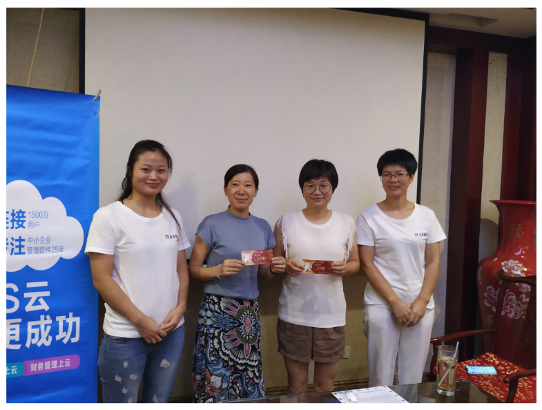 短暫的休息過后,由金華市金辰軟件公司王珺女士詳細解讀云普惠的優(yōu)惠政策??蛻魪膬r格上直接感受到云產(chǎn)品的優(yōu)勢,開展熱烈討論。 這一環(huán)節(jié)結(jié)束后,由王珺女士抽出兩個二等獎,一一為客戶送上獎品。