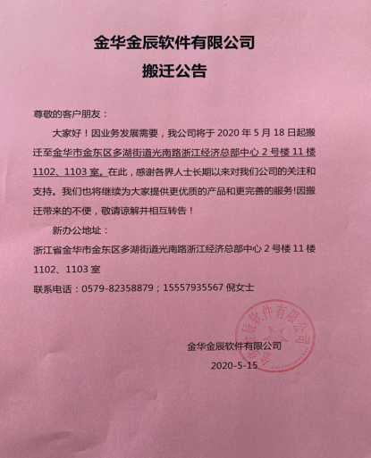 今天金辰搬家了, 18年的奮斗、18年的汗水、18年的執(zhí)著將在這里繼續(xù)前行;感謝所有金辰的客戶朋友們一路的支持和陪伴,我們將繼續(xù)為廣大新老客戶提供更多更優(yōu)質(zhì)更完善的服務(wù),繼續(xù)書(shū)寫(xiě)金華金辰的華彩篇章!