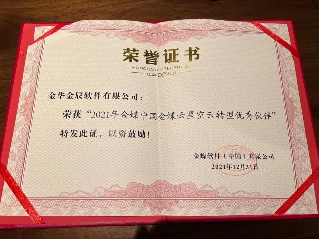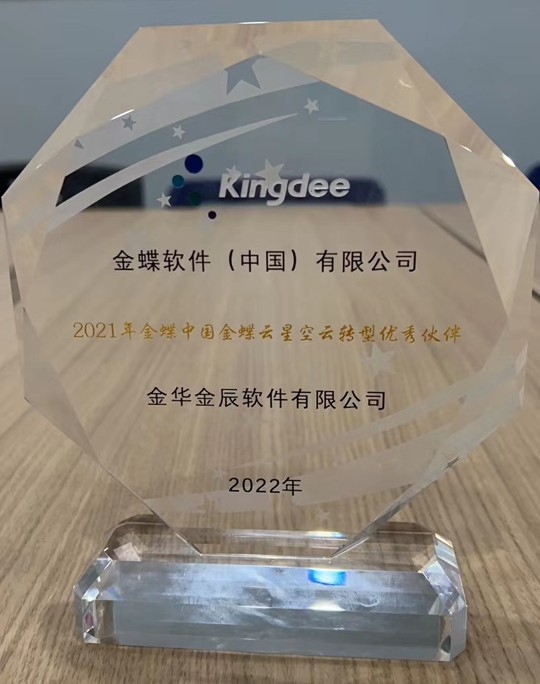 金華金辰軟件有限公司榮獲金蝶集團(tuán)“2021年金蝶中國云轉(zhuǎn)型優(yōu)秀伙伴”的榮譽(yù)!